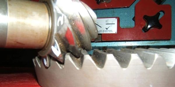 In this photo the bottom pinion tooth (tooth with the dot) is just at the point of leaving contact with the ring gear. On the HPD60 the first tooth is in contact 3/4 up the ring gear tooth and the 2nd tooth is starting to grab the first 1/4 of the ring gear tooth.